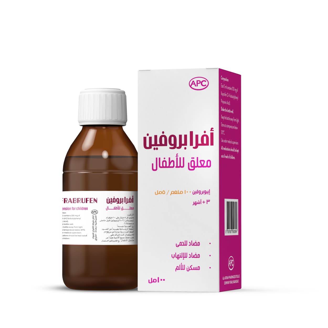 Suspension & Syrups AFRADAZOL (oral suspension) Banana flavour Anthelmintic AFRACOLDIN (Syrup) (Raspberry flavour) - for cold & influenza - decongestant - antiallergic Afracedol (Syrup) (Strawberry flavour) An effective antipyretic and analgesic Syrup for teething pain , fever , sore throat , and vaccinations AFRACEDOL (Oral suspension)(Orange flavored drink) Pain reliever and antipyretic very effective AFRABRUFEN (oral suspension)used as an anti-inflammatory - pain reliever - antypyretic AFRACTIN (Syrup) (Pineapple flavour) It used in cases : - allergy and itching - aperitif - treatment of patients suffering from migraine FRAJINE (Oral suspension)Antibiotic used to treat bacterial infection
